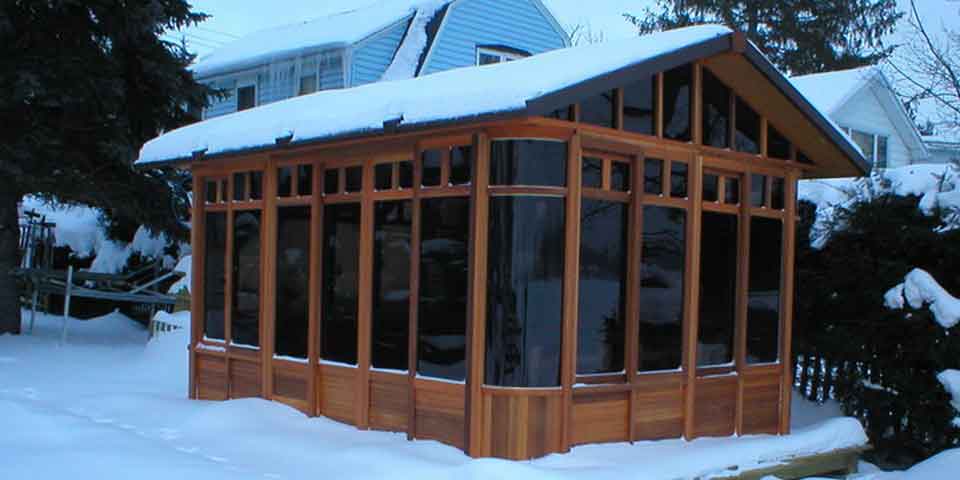 The Chalet 10x14 is designed to provide a private area for changing or lounging around an 8 foot spa.
